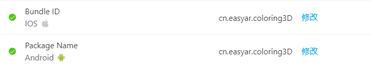 请将Sense授权管理中的Bundle ID 或 Package Name与你在Unity 或 Xcode 或Android Studio中填写的保持一致。